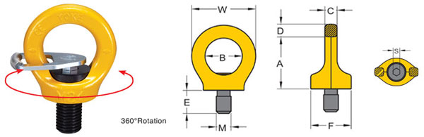 Được thiết kế để tạo điểm kết nối từ hàng hóa đến móc cẩu; giống như vai trò của tai cẩu xoay. Có khả năng xoay 360º và có thể điều chỉnh theo hướng tải. Sản xuất từ hợp kim thép; đạt các tiêu chuẩn quốc tế EN1677-1 và được chứng nhận bởi DGUV GS-OA 15-04.