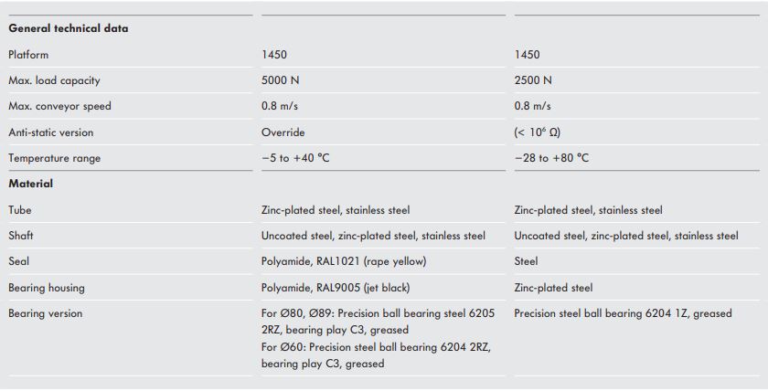 Nhờ khả năng chịu tải lên đến 5.000 N, sản phẩm có thể được sử dụng làm con lăn băng tải đa năng cho tải trọng rất cao. Loạt con lăn cũng có thể được sử dụng để thực hiện băng tải con lăn trọng lực. Phiên bản với vỏ thép chịu lực được thiết kế để sử dụng trong các ứng dụng tủ đông hoặc các ứng dụng có nhiệt độ môi trường rất cao.